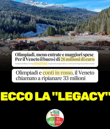 “Per questo chiediamo alla Regione piena trasparenza: come Alleanza Verdi e Sinistra, abbiamo depositato una interrogazione urgente per chiedere quanti soldi pubblici potranno ancora essere richiesti al Veneto, quali opere resteranno incompiute e con che conseguenze per le comunità montane e chi pagherà in futuro. Perché quando parliamo di legacy dei giochi olimpici non accettiamo che questo si traduca in un debito insostenibile per le future generazioni” concludono Ostanel e Perenzin.